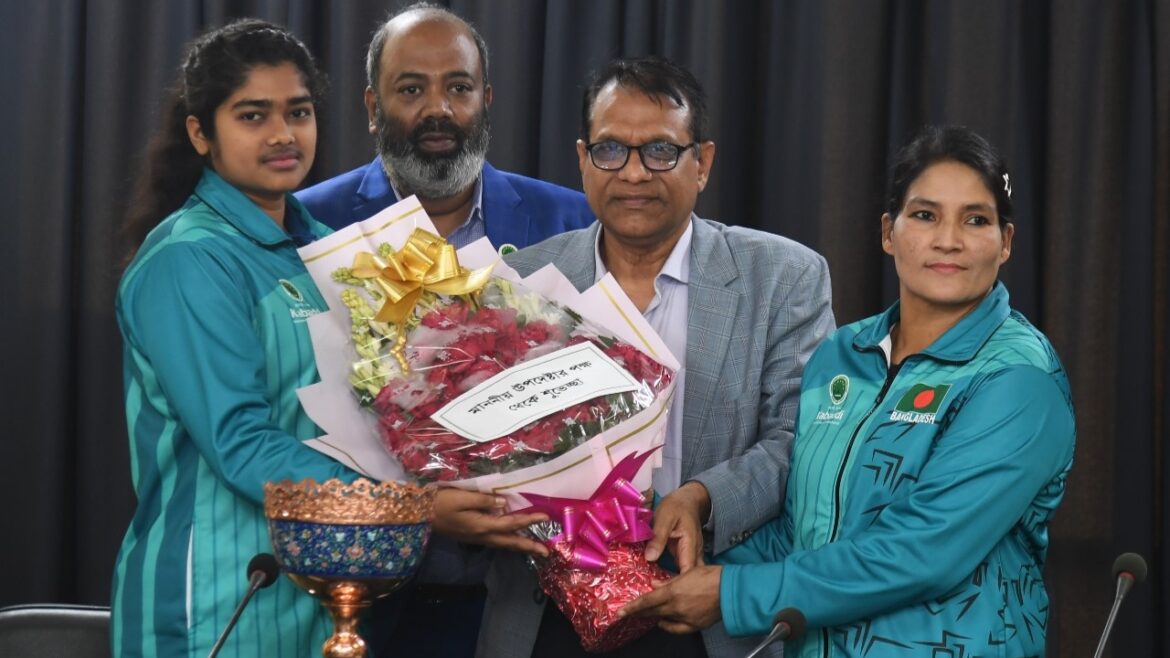 ব্রোঞ্জ জয়ী বাংলাদেশ জাতীয় নারী দলকে সংবর্ধনা দিয়েছে যুব ও ক্রীড়া মন্ত্রণালয়। জাতীয় ক্রীড়া পরিষদের সভাকক্ষে অনুষ্ঠিত সংবর্ধনা অনুষ্ঠানে প্রধান অতিথি হিসেবে উপস্থিত ছিলেন যুব ও ক্রীড়া মন্ত্রণালয়ের সচিব রেজাউল মাকছুদ জাহেদী।